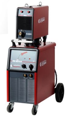 Generatore trifase per saldatura a filo di acciaio, acciaio inox e alluminio. Può essere utilizzato con carrelli trainafilo da 2 rulli, modello WF21, e da 4 rulli, modello WF41; con prolunghe di connessione carrello–generatore lunghe 4 o 9 metri da collegare alla prolunga da metri 1,5 fornita in dotazione ai carrelli trainafilo.